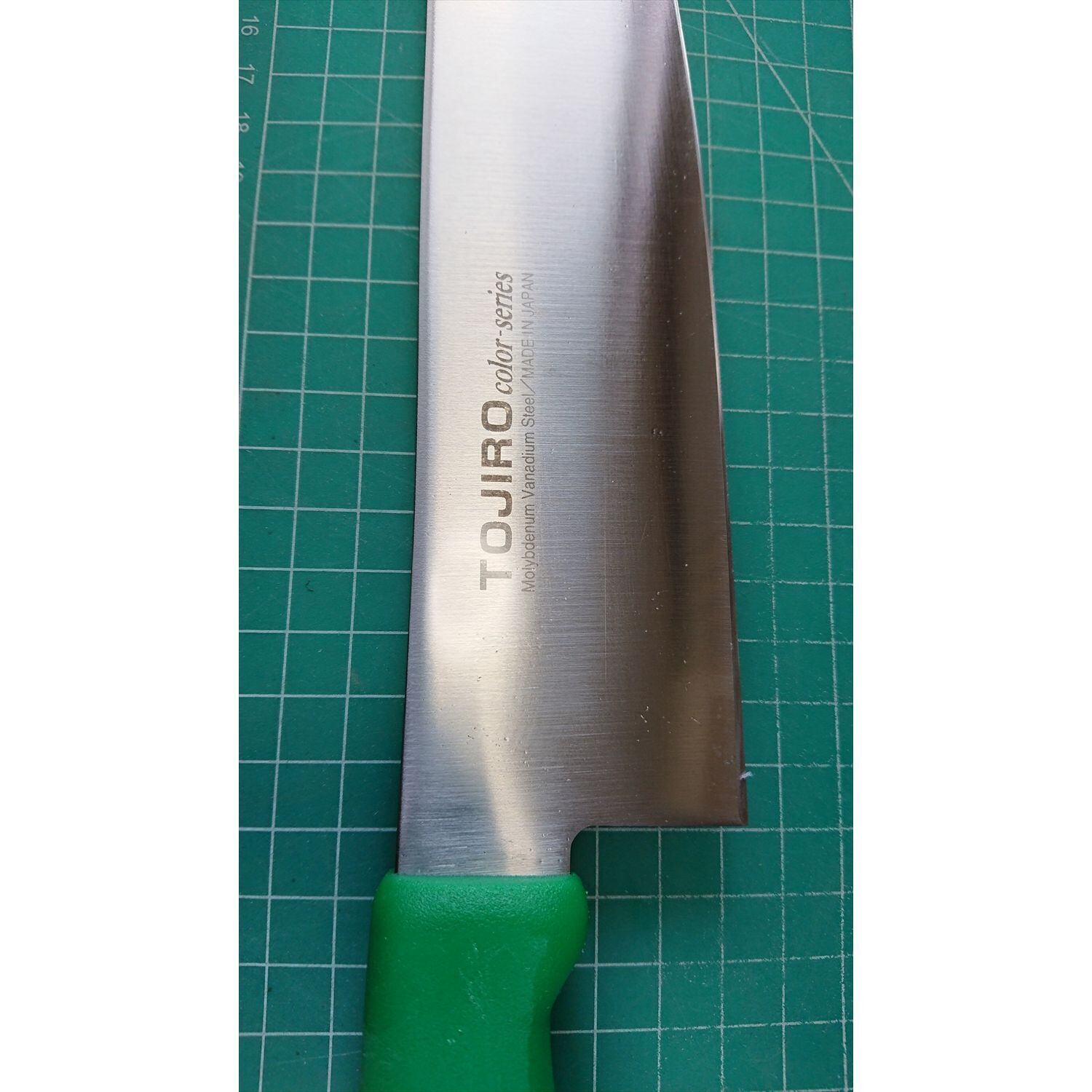1. o3717/状態:中古/銘:TOJIRO color-series/牛刀(両刃 左5:右5 右利き・左利き兼用)/刃長:300/峰厚 アゴ上:3.0/重量:226/作り:Molybdenum Vanadium Steel/他: