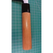 1. o3740/状態:中古/銘:堺孝行/出刃包丁(片刃 右利き用)/刃長:195/峰厚 アゴ上:8.0/重量:379/作り:鋼/他:ツバの根元から柄全体にかけて樹脂コーティング済み(防汚防サビの為)