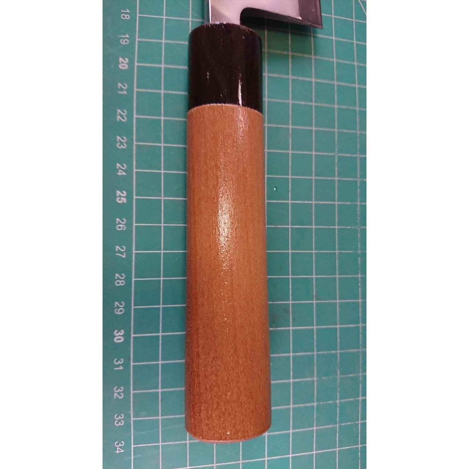 1. o3770/状態:中古/銘:武蔵野 木屋/出刃包丁(片刃 右利き用)/刃長:180/峰厚 アゴ上:7.4/重量:265/作り:鋼 水牛柄/他:ツバの根元から柄全体にかけて樹脂コーティング済み(防サビ防汚の為)