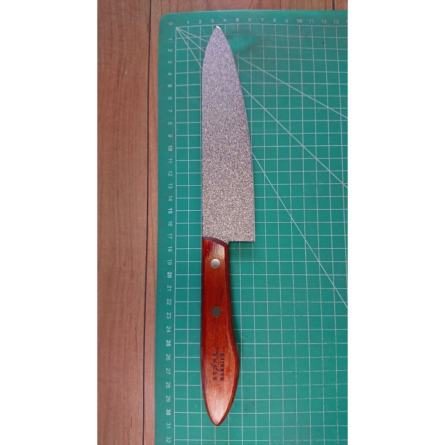1. o3779/状態:中古/銘:ストーンバリア/三徳包丁(両刃 左5:右5 右利き・左利き兼用)/刃長:175/峰厚 アゴ上:1.9/重量:104/作り:割込(鋼ステンレス)/他: