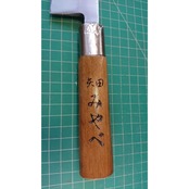 1. o3727/状態:中古/銘:矢田みやべ/身卸出刃包丁(片刃 右利き用)/刃長:175/峰厚 アゴ上:7.4/重量:244/作り:鋼 別作/他:ツバの根元から柄全体にかけて樹脂コーティング済み(防汚防サビの為)