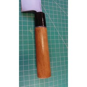 1. o3728/状態:中古/銘:房次? 本鍛錬/出刃包丁(片刃 右利き用)/刃長:130/峰厚 アゴ上:6.8/重量:187/作り:鋼/他:ツバの根元から柄全体にかけて樹脂コーティング済み(防汚防サビの為)