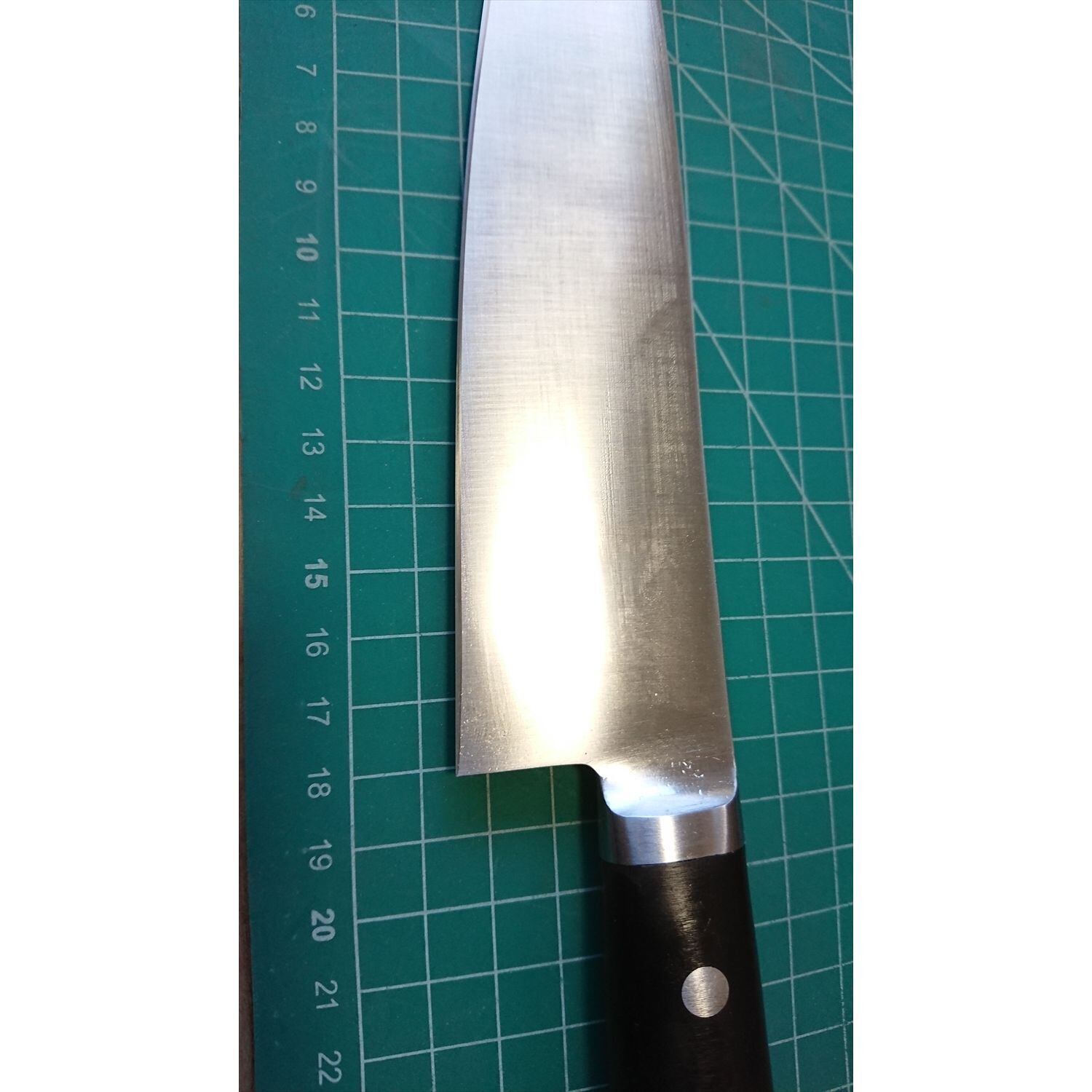 1. o3890/状態:中古/銘:正広 本焼MV鋼/牛刀(両刃 左5:右5 右利き・左利き兼用)/刃長:180/峰厚 アゴ上:1.8/重量:140/作り:本焼MV鋼/他: