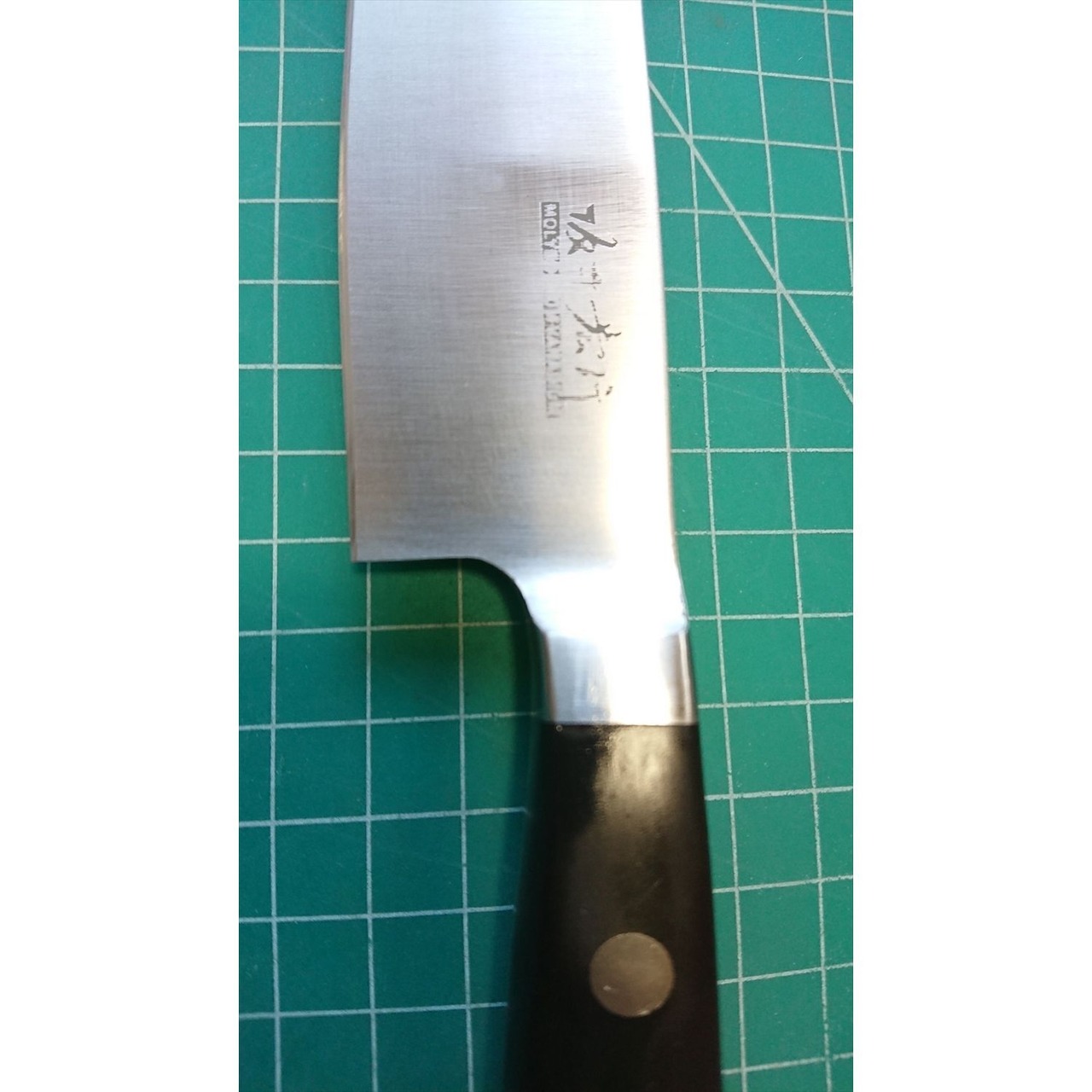1. o3899/状態:中古/銘:坂井宏之/牛刀(両刃 左5:右5 右利き・左利き兼用)/刃長:175/峰厚 アゴ上:1.5/重量:140/作り:MOLYBDENUM BANADIUM/他: