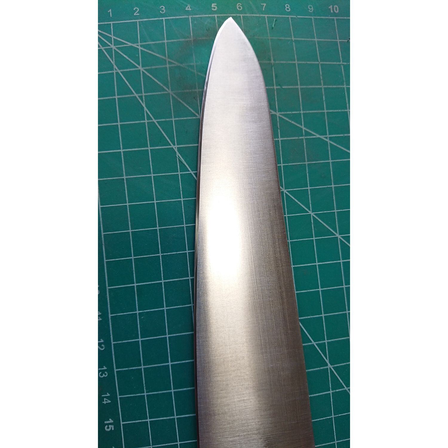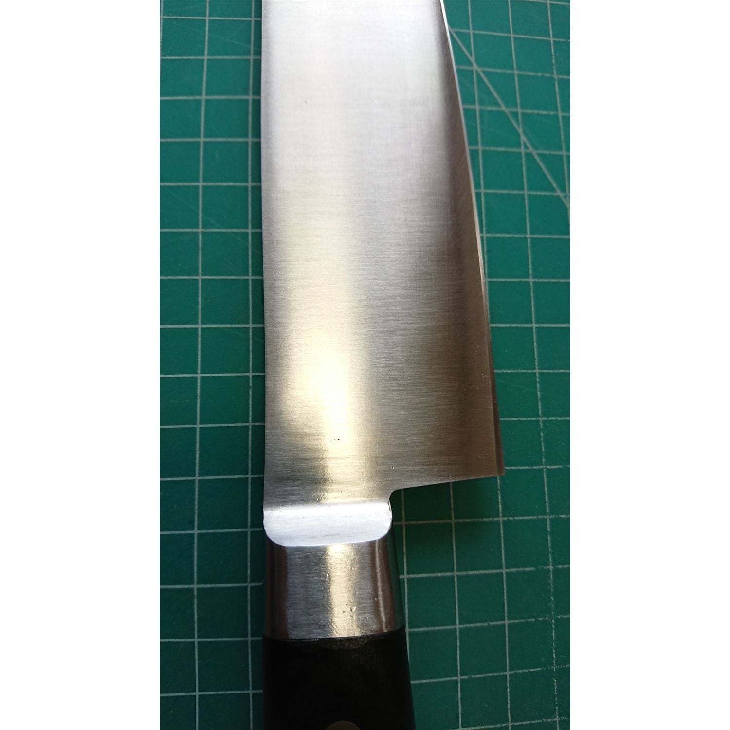 1. o3930/状態:中古/銘:義宗/牛刀(両刃 左5:右5 右利き・左利き兼用)/刃長:230/峰厚 アゴ上:2.2/重量:198/作り:ステンレス/他: